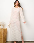 - 100% cotton women's long bell sleeve open back mesh maxi dress