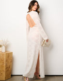 Expertly crafted from 100% cotton, this women's long bell sleeve open back mesh maxi dress offers a plethora of benefits. Model is wearing size S Length: 58" Bust: 34" Waist: 15". Upgrade your wardrobe today!