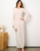 100% cotton women's long bell sleeve open back mesh maxi dress