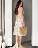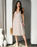 Stay cool and comfortable all day in our 100% cotton women's sleeveless v-neck smock back midi dress. With a flattering silhouette, this versatile dress is perfect for any occasion. The model is wearing a size Small with a length of 40 inches, a bust of 28 inches, and a waist of 13 inches.