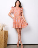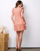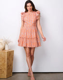 100% cotton women's ruffle sleeve tiered paisley print mini dress
