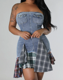 This Lesleyanne Dress combines classic denim and plaid details with a modern tube silhouette and corset accents for a flattering fit. Crafted from 98% cotton and 2% spandex, it offers semi-stretch comfort and shape retention. The zipper closure ensures easy wear, while the hand wash cold care keeps the fabric looking fresh.