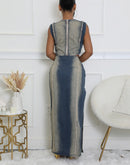 The Edge Of Midnight Skirt Set combines a sleeveless top with a round neckline and zipper closure, paired with a high-waisted, non-stretch denim skirt featuring distressed detailing and a slit. The skirt’s side zipper ensures a secure fit, while the 90% cotton and 10% polyester blend offers durability and comfort. Designed for a contemporary, polished look, this set requires hand washing in cold water to preserve its structure and finish. Ideal for those seeking a sophisticated yet edgy denim outfit.