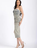 This women's sleeveless bodycon bandage maxi dress features a sleek, figure-hugging silhouette crafted from a premium cotton blend for comfort and style. Its zip-up front and functional pockets add practicality without compromising elegance. The versatile midi length and sleeveless design make it perfect for seamless day-to-night transitions. Ideal for fashion-forward wardrobes, this dress pairs effortlessly with strappy heels and statement accessories or layered with a cardigan and boots for cooler days.