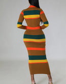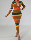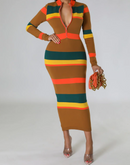 Striped Stretch Midi Dress – Bold & Body-Hugging
