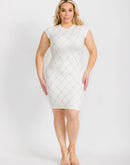 This plus-size white bodycon mini dress features a sleeveless silhouette and edgy studs detailing, crafted from a soft blend of viscose, polyester, and nylon for all-day comfort. Its figure-hugging fit and mini length make it a versatile layering piece suitable for any season. Ideal for retailers seeking a stylish, contemporary option, it pairs perfectly with heels and a leather jacket for evenings or a blazer and ankle boots for a polished daytime look. A standout choice for adding bold elegance to any collection.