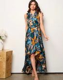 This Women's sleeveless surplice floral high-low maxi dress is perfect for any occasion. Its flattering silhouette and delicate floral pattern will make you stand out.