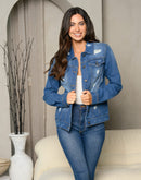 100% cotton women's long sleeve denim button up distress jean jacket