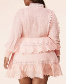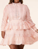 100% cotton plus size long sleeve mock neck tiered ruffle mini dress.