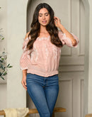 This 100% cotton women's off shoulder top is the perfect blend of style and comfort. Made with 100% natural cotton, it offers a soft and breathable fabric that is gentle on the skin. The off shoulder design adds a touch of elegance, while the embroidery detailing adds a delicate and feminine touch to any outfit. Stay cool and stylish with this must-have wardrobe staple.