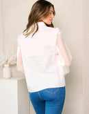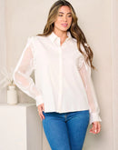 100% Cotton Blouse. Women's long sheer sleeves button up ruffle blouse top.