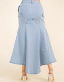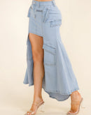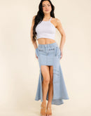 Women's Button Closure High-Low Denim Maxi Skirt