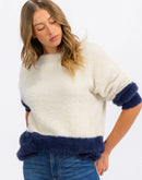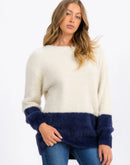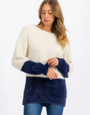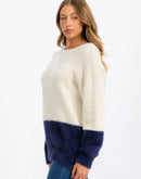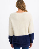 Women's Fuzzy Color-block Pullover Sweater
