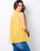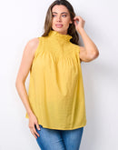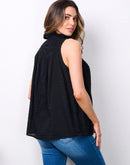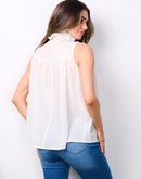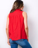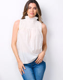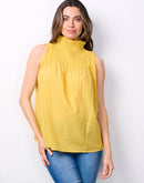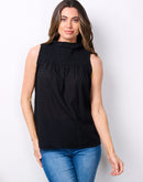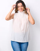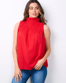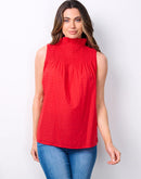 100% Cotton Tank Top. Sleeveless mock neck swiss detailed tank top