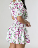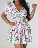 Women's Stretch V-Neck Lace-Up Dress with Short Sleeves